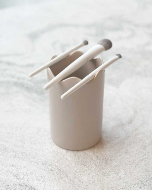 The Ceramic Brush Holder is a cylindrical vessel designed to store and protect your accessories, keeping them upright and safely away from water and other contaminants. Designed to dry your brushes correctly, horizontally.